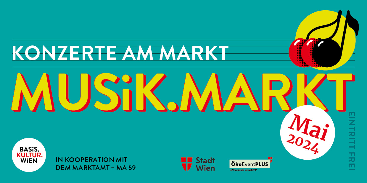 Die Konzertreihe MUSiK.MARKT 2024 ist als Öko-EventPLUS der Stadt Wien zertifiziert. Wir bitten darum die Veranstaltungen möglichst mittels öffentlichem Nahverkehr oder dem Fahrrad zu besuchen. Alle Märkte sind gut an das Netz der Wiener Linien angebunden und es sind ausreichend Fahrrad-Abstellplätze vor Ort.
